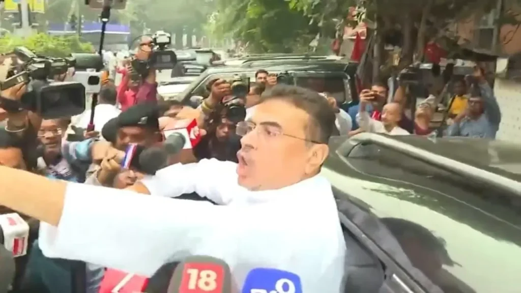 এদিন সিইওর দপ্তরে গিয়ে বাইরে লাগাতার যেভাবে বিক্ষোভ চলছে এবং যেভাবে মাইক টাঙিয়ে এই ধরনের অসভ্যতা কিছু মানুষ করছেন, তার যৌক্তিকতা নিয়ে প্রশ্ন করেন রাজ্যের বিরোধী দলনেতা শুভেন্দু অধিকারী। পাশাপাশি এক্ষেত্রে কেন পুলিশের সক্রিয়তা লক্ষ্য করা যাচ্ছে না, তা নিয়েও প্রশ্ন তোলেন তিনি। শুধু তাই নয়, রাজ্যের সিইওর সামনে তার অফিসের সুরক্ষাও যে নিশ্চিত নয়, সেই কথাও ব্যাক্ত করেন রাজ্যের বিরোধী দলনেতা। আর তারপরেই বাইরে বেরিয়ে তিনি যখন আসেন, তখন আবার তৃণমূলের পক্ষ থেকে সেই যে বিএলও অধিকার রক্ষা কমিটির রয়েছে, তারা আবার শুভেন্দুবাবুকে গো ব্যাক স্লোগান দিতে শুরু করেন। আর তারপরেই তৃণমূলকে সর্বদা যে চোর, চোর বলে কটাক্ষ করেন রাজ্যের বিরোধী দলনেতা, এদিনও সেই বিক্ষোভকারীদের উদ্দেশ্যে নিজের গাড়ি থেকেই চোর, চোর স্লোগান দিয়ে রীতিমত প্রেস্টিজে ফেলে দেন শুভেন্দু অধিকারী।