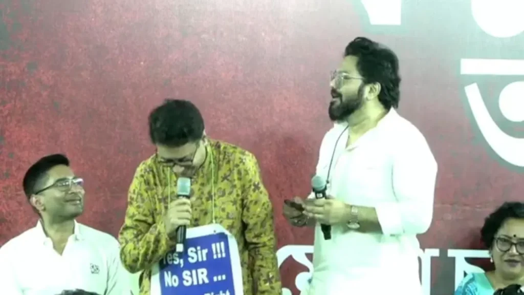 তৃণমূল কংগ্রেস নিজেদের বাংলা ও বাঙালিদের দল বলে দাবি করে। কিন্তু সেই তৃণমূলের বাংলা প্রেম নিয়ে অতীতেও প্রশ্ন উঠেছে। প্রশ্ন উঠেছে, সম্প্রতি রাজ্যসভায় তৃণমূলের প্রার্থীদের চয়ন করা নিয়েও। বাংলাকে সবথেকে বেশি ভালোবাসা দল কি করে বহিরাগত প্রার্থীকে বাংলার রাজ্যসভা থেকে টিকিট দিতে পারে, তা নিয়ে প্রশ্ন তুলেছে বিরোধীরা। বারবার প্রশ্ন উঠেছে, মমতা বন্দ্যোপাধ্যায় বিভিন্ন মঞ্চে যখন বাংলা শব্দ ভুল বলেন এবং বিভিন্ন উচ্চারণ ভুল করেন, তা নিয়েও বিরোধীরা সোচ্চার হয়েছে। তবে তৃণমূলের মধ্যেও তো কিছু সংস্কৃতি পরায়ণ মানুষ রয়েছেন। যার মধ্যে অন্যতম, বাবুল সুপ্রিয়কে ধরা হয়। গতকাল তিনি আবার এক সংবাদমাধ্যমকে যেভাবে হুমকি দিয়েছেন, তা নিয়ে এখনও চর্চা চলছে। আর তার মাঝেই আজ মমতা বন্দ্যোপাধ্যায় এসআইআরের প্রতিবাদে যে ধর্ণা মঞ্চ আজ থেকে শুরু করেছেন, সেখানে গান গাইতে গিয়ে রীতিমত লোক হাসিয়ে ফেললেন তৃণমূলের রাজ্যসভার প্রার্থী এবং বিশিষ্ট সংগীত শিল্পী বলে পরিচিত বাবুল সুপ্রিয়।