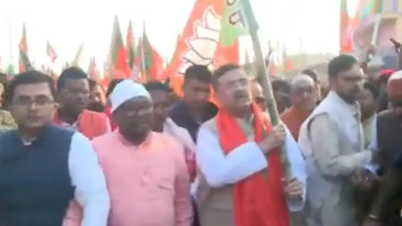 গত শনিবার রাজ্য রাজনীতিতে দেখার মত দৃশ্য সামনে আসে। যেখানে পুরুলিয়ার থেকে সভা করে ফেরার পথে রাজ্যের বিরোধী দলনেতা শুভেন্দু অধিকারীর কনভয়ে হামলা করার অভিযোগ ওঠে। এমনকি মোটা মোটা বাঁশ দিয়ে এবং কেরোসিন তেল দিয়ে তাকে হত্যা করার চক্রান্ত হয়েছিল বলেও দাবি করেন বিজেপি নেতা কর্মীরা। পরবর্তীতে প্রতিবাদ করে চন্দ্রকোনা বিট হাউসে গিয়ে দীর্ঘক্ষণ বসে থেকে ধর্না দেন রাজ্যের বিরোধী দলনেতা। শুধু চন্দ্রকোনা নয়, রাজ্যের বিভিন্ন জায়গায় এই ঘটনার প্রতিবাদে বিজেপি নেতা কর্মীরা ময়দানে নামেন। ইতিমধ্যেই গোটা বিষয়টি আদালতের দরজায় পৌঁছে গিয়েছে। আর এই পরিস্থিতিতে শুভেন্দু অধিকারী যেদিন এই ঘটনা ঘটেছিল, সেদিনই জানিয়ে দিয়েছিলেন যে, তিনি চন্দ্রকোনায় এসে মিছিল করবেন। আর সেই মতই আজ সেই চন্দ্রকোনায় বিজেপির পতাকা হাতে প্রচুর মানুষকে সঙ্গে নিয়ে এবং বিজেপি কর্মীদের সাথে করে প্রতিবাদ মিছিল করলেন রাজ্যের বিরোধী দলনেতা।