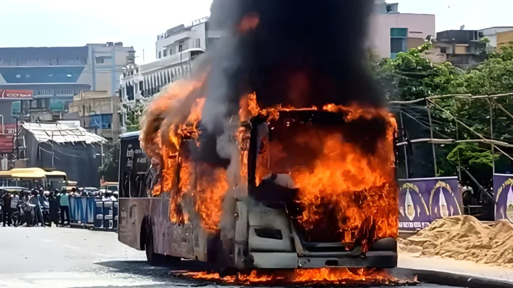 শহর কলকাতায় সাধারণ নিত্য যাত্রীদের এক জায়গা থেকে অন্য জায়গায় পৌঁছনোর অন্যতম ভরসা হচ্ছে বাস। কেউ যদি মেট্রো না পায় বা সেই গন্তব্যস্থলে মেট্রো না চলে, তাহলে ভরসা রাখতে হয় বাসের ওপরেই। কিন্তু আজ যে ঘটনা ঘটে গেল খাস কলকাতার বুকে, তাতে প্রশ্ন উঠছে যে, বাসেও কি নিরাপদ সাধারণ মানুষ? একেবারে প্রকাশ্য রাস্তায় বিমানবন্দরে যাওয়ার পথে তেঘরিয়ার কাছে দাউদাউ করে এসি বাসে জ্বলে গেল আগুন। যে ঘটনায় রীতিমত আতঙ্কে রয়েছেন যাত্রীরা। অল্পের জন্য প্রাণে বাঁচলেন তারা। কি ঘটনা ঘটেছে? হঠাৎ করে কেন এসি বাসে আগুন ধরে গেল কলকাতার বুকে?
