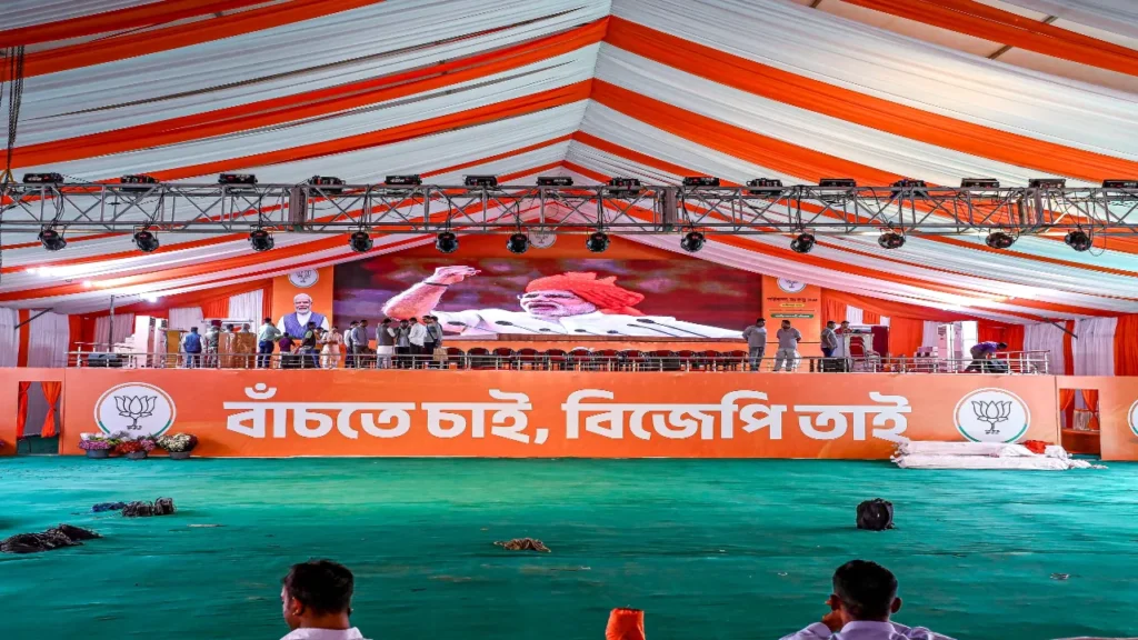 সূত্রের খবর, বর্তমানে দমদম বিমানবন্দরেই অপেক্ষা করছেন প্রধানমন্ত্রী নরেন্দ্র মোদী। সড়কপথে তিনি তাহেরপুরের সভায় পৌঁছতে পারেন বলে বিভিন্ন মহলে গুঞ্জন শোনা গেলেও, শেষ পর্যন্ত সেই সভায় স্বশরীরে উপস্থিত হচ্ছেন না প্রধানমন্ত্রী। এক্ষেত্রে প্রতিকূল আবহাওয়া থাকার কারণে তার কপ্টার ফিরে এসেছে। তবে ভার্চুয়ালি সেই বিমানবন্দরের লাউঞ্জে প্রধানমন্ত্রী যাতে বার্তা দিতে পারেন, তার জন্য সমস্ত প্রস্তুতি শুরু হয়ে গিয়েছে। অর্থাৎ সশরীরে নয়, ভার্চুয়ালি দমদম বিমানবন্দর থেকেই একদিকে সরকারি সভা, আর একদিকে দলীয় সভায় বার্তা দেবেন প্রধানমন্ত্রীর নরেন্দ্র মোদী।